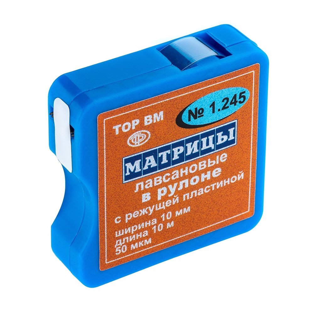 Матрицы 1.245 лавсановые в рулоне, ширина 10 мм, длина 10 м (квадратная упаковка с режущей пластиной) (ТОР ВМ)