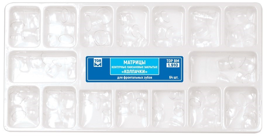 Матрицы 1.910 контурные лавсановые закрытые колпачки" для фронтальных зубов (64 шт) (ТОР ВМ)