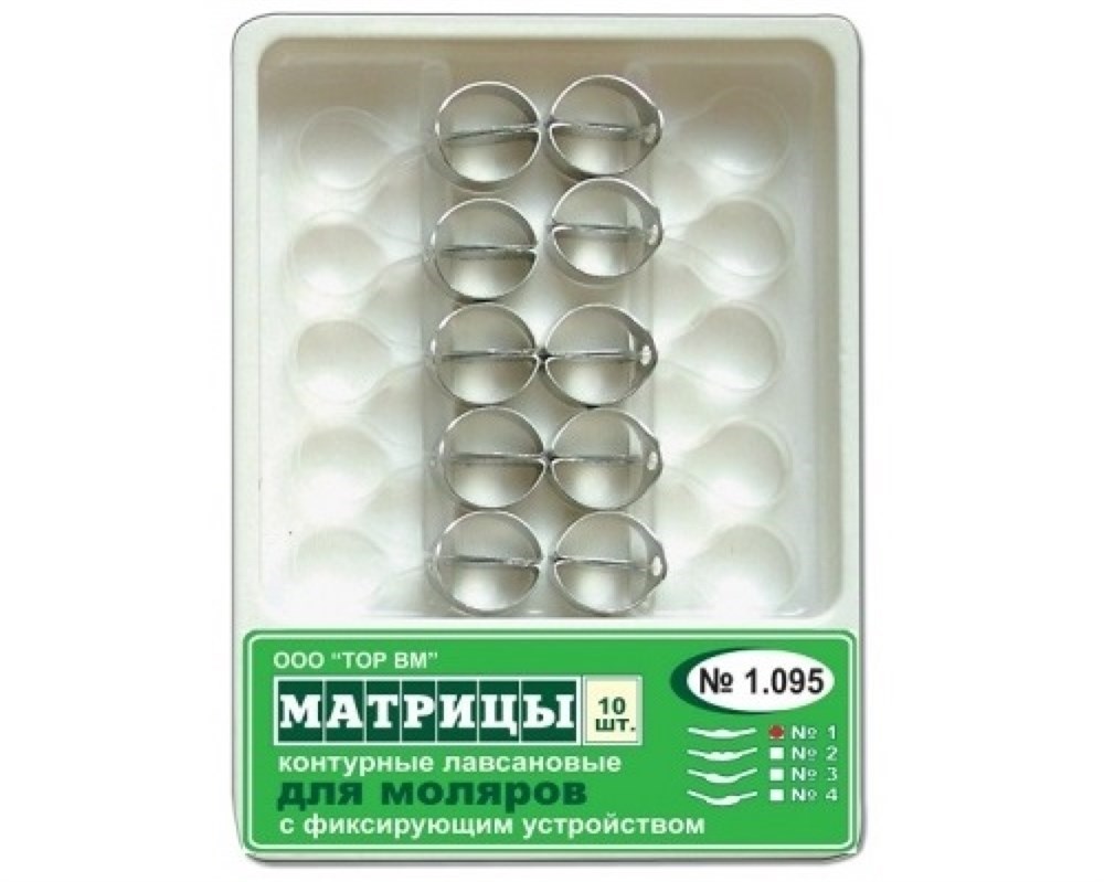 Матрицы контурные, лавсановые, с фиксирующим устройством, для моляров форма 2 "ТОР ВМ"1.095(2) Матрицы контурные лавсановые с фиксирующим устройством для моляров,форма 2, ТОР ВМ (Россия)