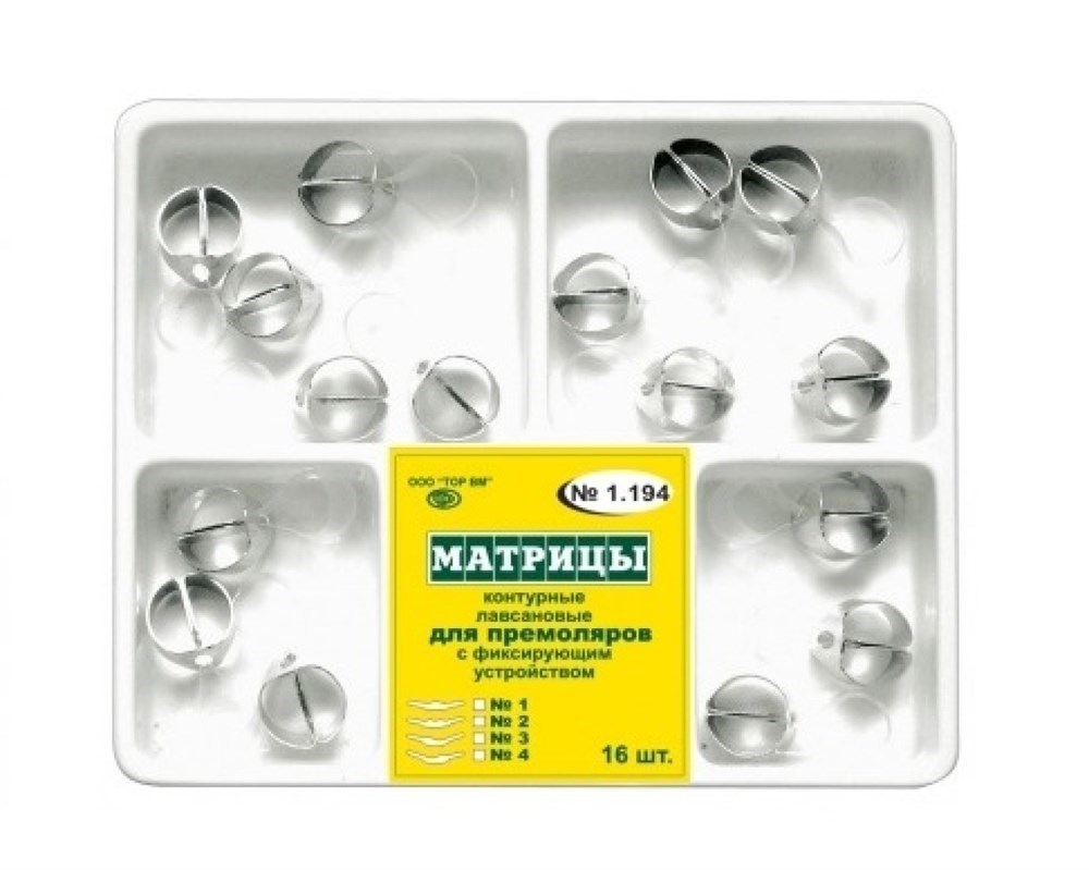 Матрицы контурные лавсановые "ТОР ВМ"Матрицы контурные, лавсановые, с фиксирующим устройством для премоляров, 1.194, ТОР ВМ (Россия)