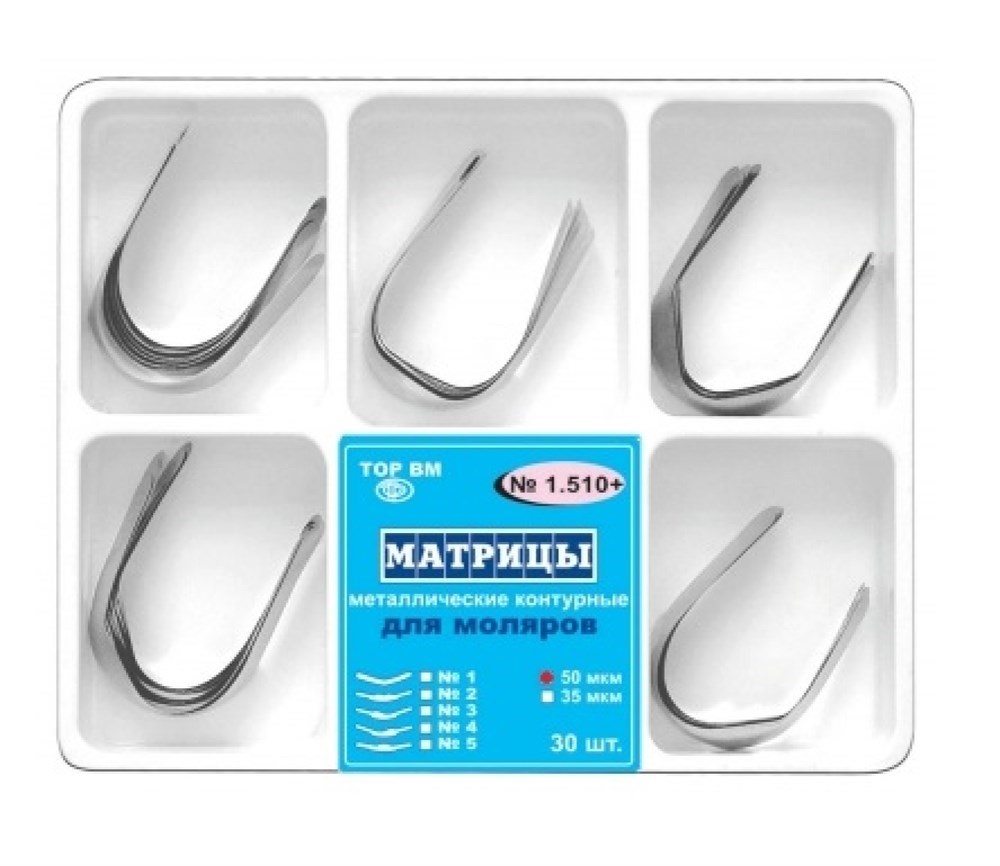 Матрицы металлические, контурные, для моляров 5-ти форм "ТОР ВМ"Матрицы металлические контурные, для моляров 5-ти форм, 1.510+, ТОР ВМ (Россия)