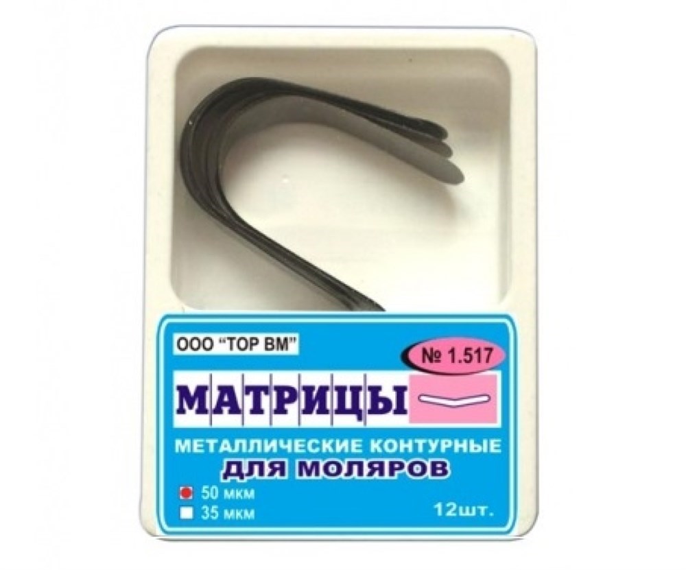 Матрицы металлические, контурные, для моляров без выступа "ТОР ВМ"Матрицы металлические контурные, для моляров без выступа, 1.517, ТОР ВМ (Россия)