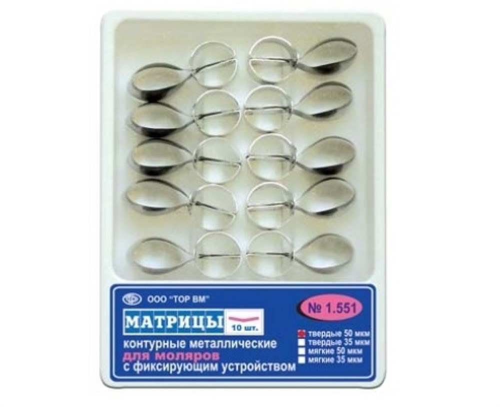 Матрицы металлические, контурные, для моляров форма 1 "ТОР ВM"1.551 Матрицы металлические, контурные, с фиксирующим устройством, для моляров (форма 1), ТОР ВМ (Россия)