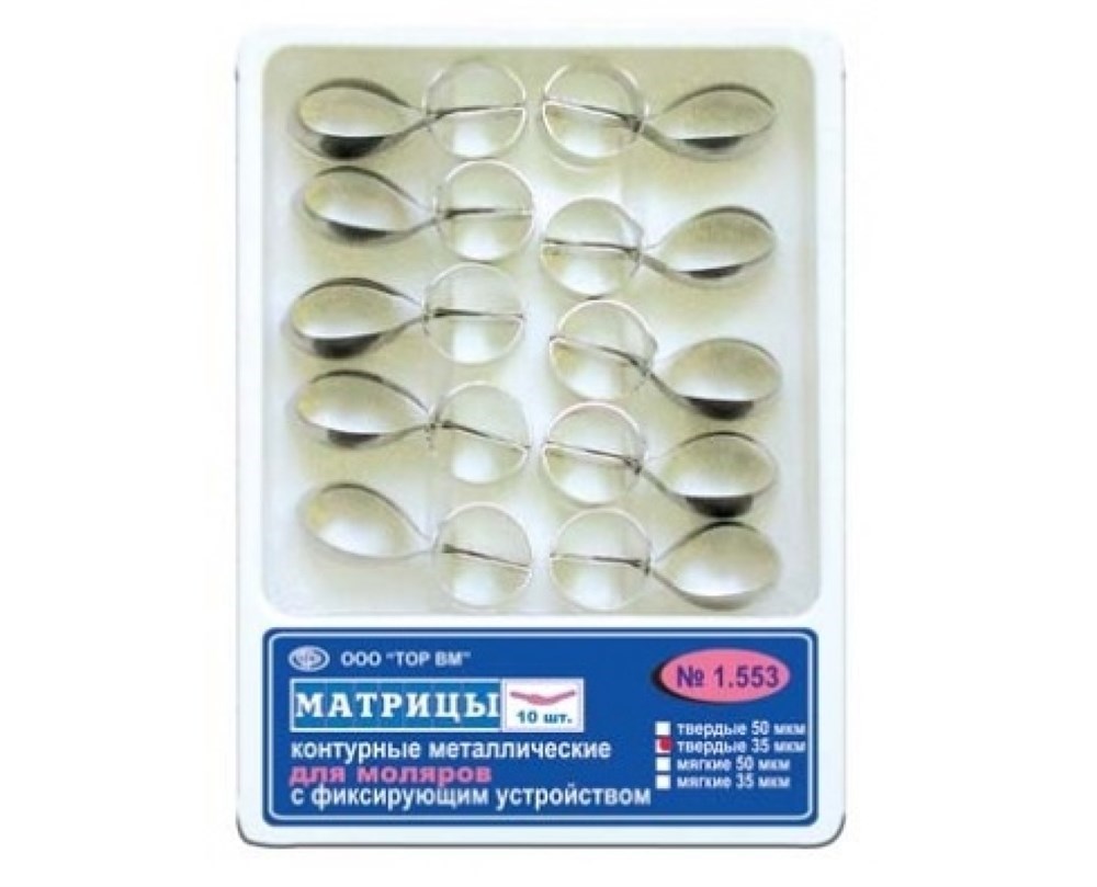 Матрицы металлические, контурные, для моляров форма 3 "ТОР ВM"1.553 Матрицы металлические, контурные, с фиксирующим устройством, для моляров (форма 3), ТОР ВМ (Россия)