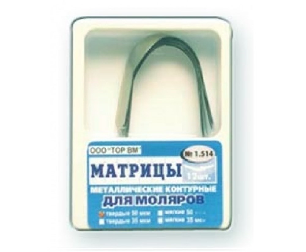 Матрицы металлические, контурные, для моляров формы 4 "ТОР ВМ"Матрицы металлические контурные, для моляров формы 4, ТОР ВМ (Россия)