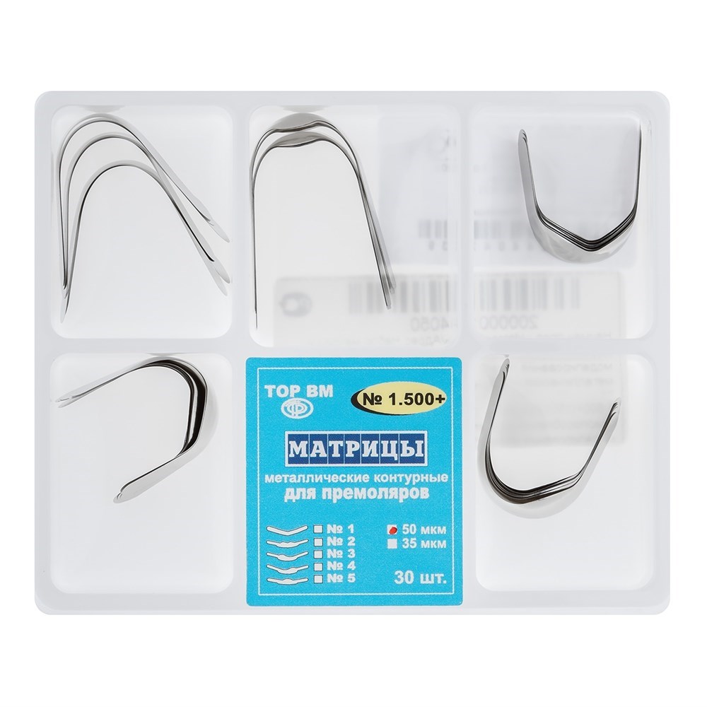 Матрицы металлические контурные для премоляров 5-ти форм, 50мкм, 30шт ТОР ВМ", 1.500+