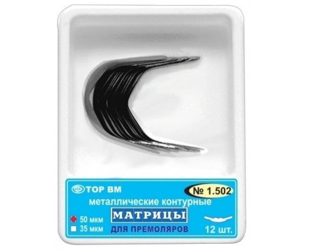 Матрицы металлические, контурные для премоляров формы 2 "ТОР ВМ"Матрицы металлические контурные, для премоляров формы 2, 1.502, ТОР ВМ (Россия)