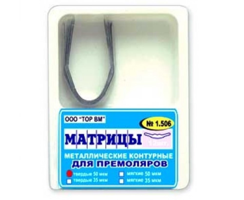 Матрицы металлические, контурные, для премоляров формы 6 "ТОР ВМ"Матрицы металлические контурные, для премоляров формы 6, 1.506, ТОР ВМ (Россия)