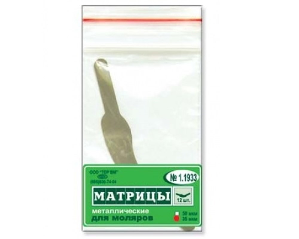 Матрицы металлические, плоские для моляров форма 3 "ТОР ВМ"1.1933 Матрицы металлические, плоские, для моляров (форма 3), ТОР ВМ (Россия)