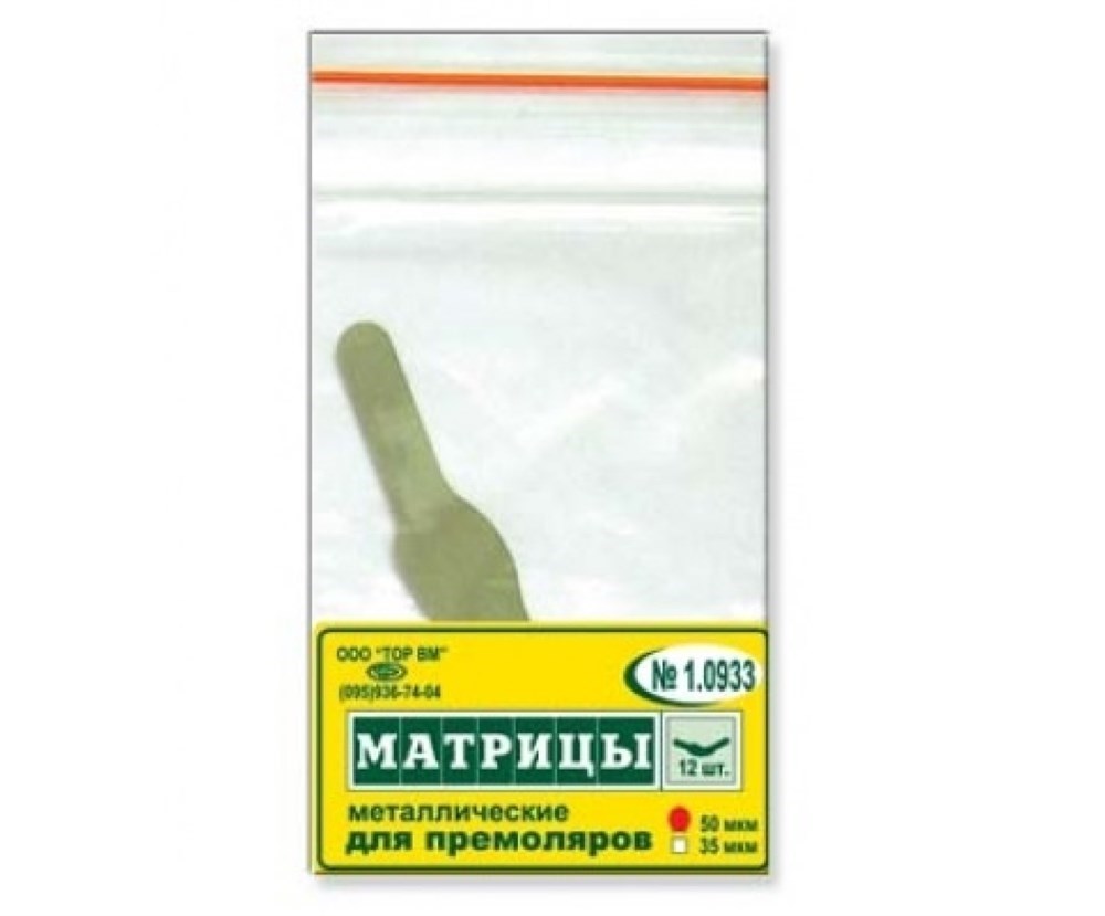Матрицы металлические, плоские для премоляров форма 3 "ТОР ВМ"1.0933 Матрицы металлические, плоские, для премоляров (форма 3), ТОР ВМ (Россия)