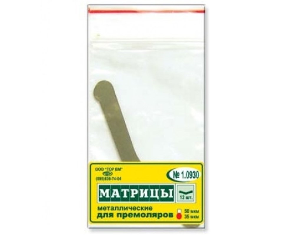 Матрицы металлические, плоские для премоляров "ТОР ВМ"1.0930 Матрицы металлические, плоские, для премоляров, ТОР ВМ (Россия)