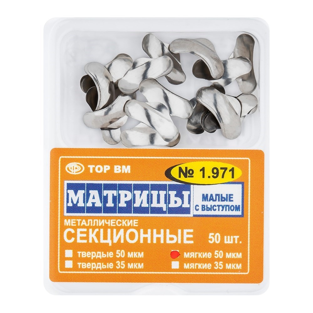 Матрицы металлические секционные, малые с выступом твердые 50мкм, 50шт ТОР ВМ", 1.971