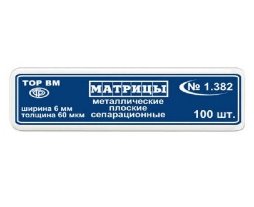 Матрицы-полоски 1.382 металлические плоские сепарационные (ширина 6 мм, длина 50 мм, толщина 60 мкм) (100 шт.)(ТОР ВМ)