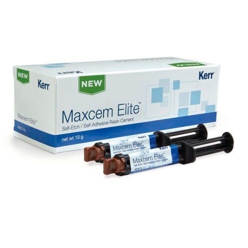 Maxcem Eliteтм представляет собой самопротравливающий адгезивный цемент на основе смолы, выпускающийся в форме паста-паста и предназначенный для цементирования непрямых керамических, фарфоровых, полимерных и металлических реставраций. Благодаря тому, что MaxCem сам обладает протравливающими и адгезивными свойствами, он не требует использования травителя, праймера или адгезива. Данный продукт содержит 69% (по массе) наполнителя и является рентгеноконтрастным.