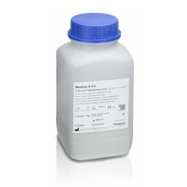 Сплав из неблагородных металлов Mediloy S-Co на основе кобальта 5-го типа, состоящий из кобальта, хрома, вольфрама и молибдена, специально разработанный для использования при изготовлении методом SLM.
