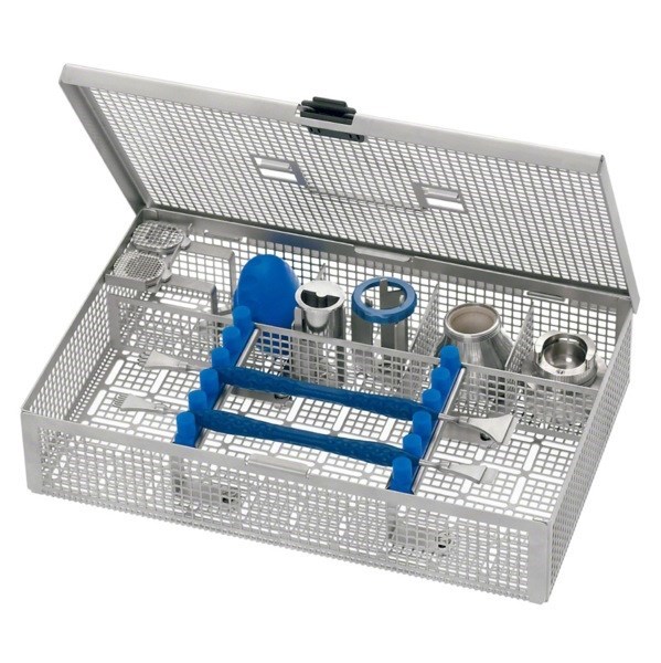 Набор костной мельницы с комплектующими для костной пластики. Металлический бокс предназначен для хранения и автоклавирования.