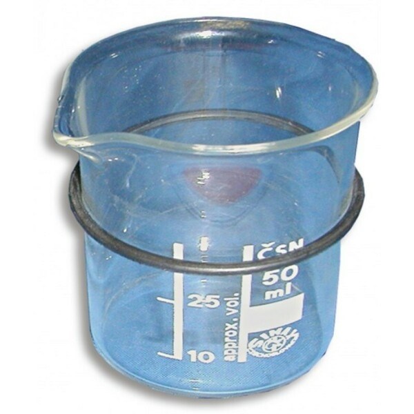 Мерный стеклянный стаканчик с ограничительным кольцом, объем 50 мл. Используется для мелких медицинских инструментов в ванне ультразвуковой «УльтраЭст».