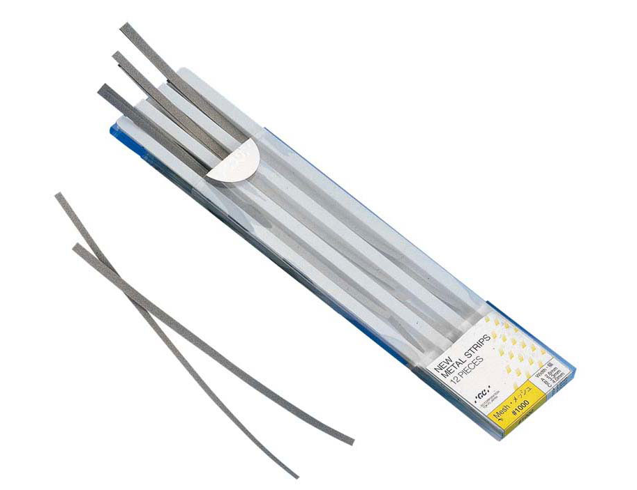 Металлические полоски - Metal Strips - различной абразивности, гальванически покрытые порошком оксида алюминия. Для апроксимального оконтуривания, финирования и полировки любых реставраций. Автоклавируются и легко очищаются. Цвет голубой, № 300, абразивность 90 мк для конечной обработки. Упаковка 12 шт.