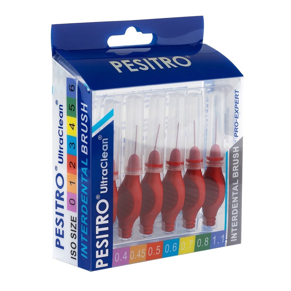 Межзубные щетки (ершики) для чистки зубов с прорезиненной ручкой PESITRO (0,5мм красн., 6 шт. в упак)
