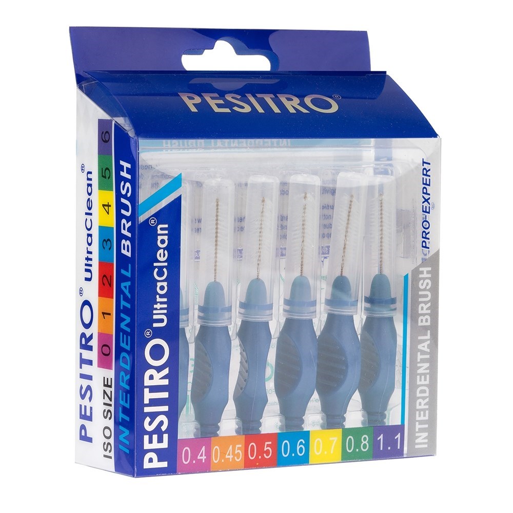 Межзубные щетки (ершики) для чистки зубов с прорезиненной ручкой PESITRO (0,6мм син., 6 шт. в упак)