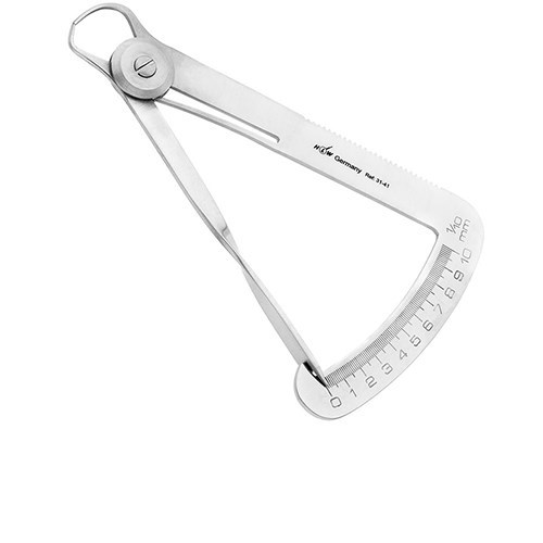 Рабочая часть измерительного инструмента представлена двумя встречными острыми зубцами продолговатой формы, которые плотно фиксируются на рабочем материале и предотвращают его выскальзывание.