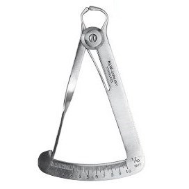 Микрометр для измерения толщины восковых конструкций имеет общую длину 10,5 см, шаг деления 0,1мм. Шкала от 0 до 10 мм. Поверхность матовая, деления и отметки выгравированы. Оборудован внутренней разводящей бранши пластиночной пружиной. Рабочие части имеют шарообразное утолщение на конце, для предотвращения раздавливания восковой конструкции.