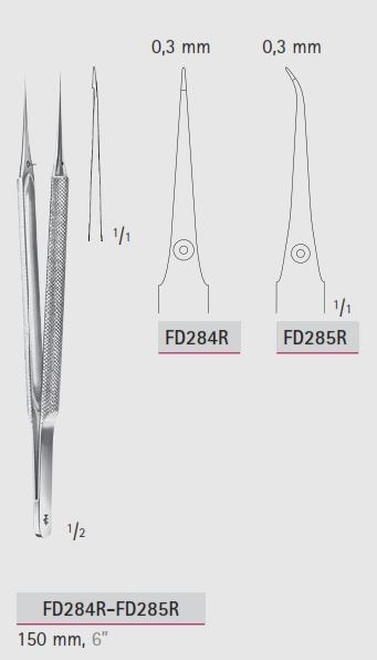 Микропинцет для вязки узлов, изогнутый, 0.3 мм, длина 150 мм., арт: FD285R