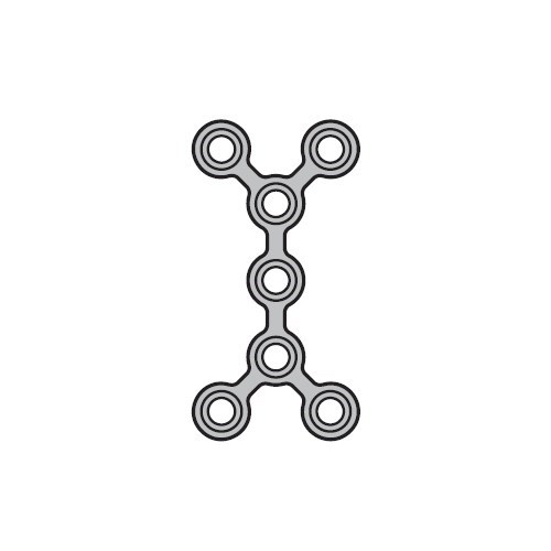 Микропластина длинная от компании Конмет толщиной 0,6 мм изготовлена из титана, имеет Х-образную форму и 7 отверстий. Применяется для черепно-челюстно-лицевого остеосинтеза и костной пластики.