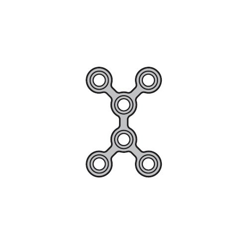Короткая микропластина толщиной 0,6 мм изготовлена из титана, имеет Х-образную форму и 6 отверстий. Применяется для черепно-челюстно-лицевого остеосинтеза и костной пластики.