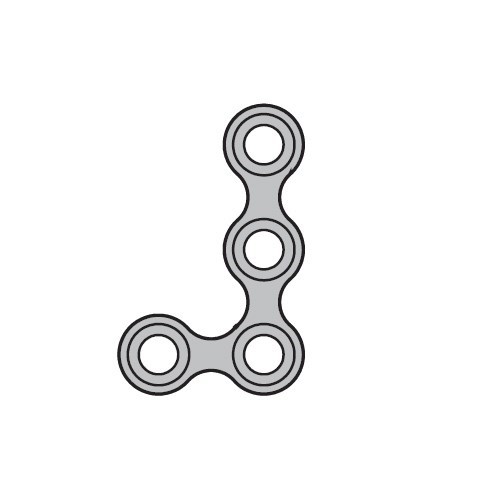 Короткая мини-пластина толщиной 1 мм изготовлена из титана, имеет L-образную форму и 4 отверстия. Применяется для черепно-челюстно-лицевого остеосинтеза и костной пластики.
