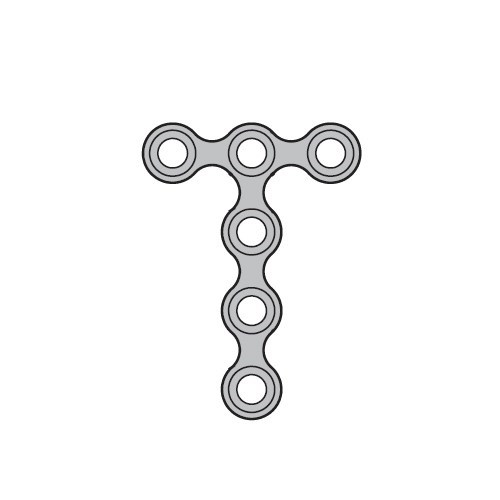 Длинная мини-пластина Конмет толщиной 1 мм изготовлена из титана, имеет Т-образную форму и 6 отверстий. Применяется для черепно-челюстно-лицевого остеосинтеза и костной пластики.