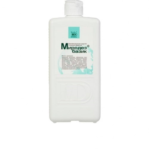Описание: Миродез базик 1л - дезраствор концентрат, универсальные средства с моющим эффектомДезинфицирующее средство «Миродез Базик» 1 л (концентрат).