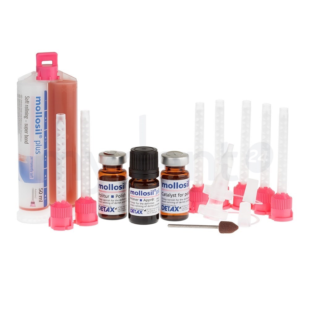 Прямая перебазировка длительного пользования на основе А-силикона, мягкопластичный, холодного отверждения, биосовместимый. Наносится непосредственно из картриджа на основу протеза. Абсолютно надежная адгезия на всех акриловых пластмассах протезов. Может также обрабатываться по непрямому методу. Праймер с цветовым индикатором для визуального контроля нанесения. Также прилагается брошюра для пациентов и шлифовальный набор.