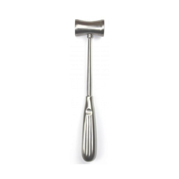 Стоматологический молоток HAJEK предназначен для нанесения удара по хирургическому долоту и остеотому. Данный инструмент имеет цельнометаллическую рабочую часть с двумя поверхностями диаметром 22 мм каждая. Специальная грушевидная форма ручки с продольными желобовидными насечками с двух сторон и выемками под пальцы обеспечивает надежный захват инструмента.