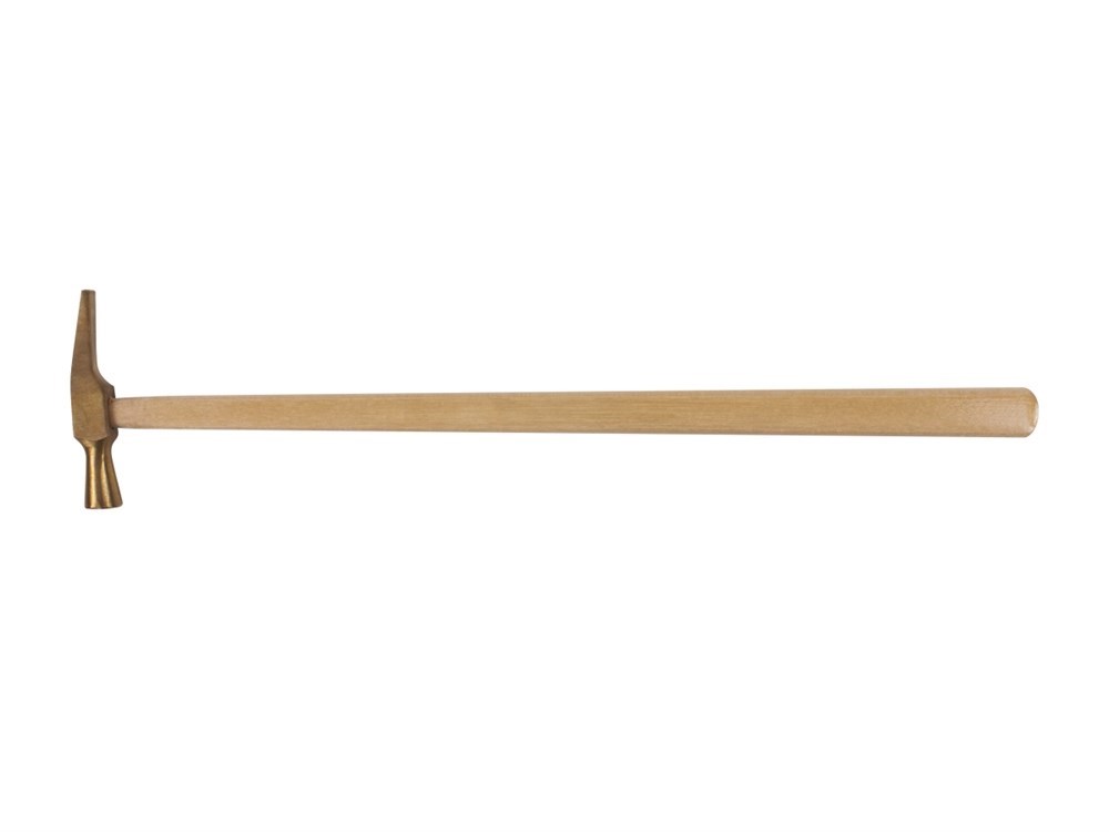Молоток латунный зуботехнический. Ударная часть имеет два вида бойков: обратно-конусный с плоской ударной частью и сужающийся заостренный. Ударная часть изготовлена из латуни и насажена на деревянную ручку. Размеры: длина с ручкой 300 мм, длина ударной части 70 мм Вес молотка с ручкой 100 г, ударной части 80 г.