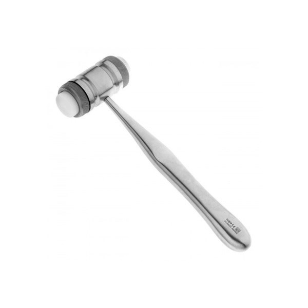 Хирургический молоток MEAD применяется для нанесения удара по хирургическому долоту и остеотому ходе проведения оперативных вмешательств. С обоих концов рабочей части молотка расположены специальные резиновые накладки диаметром 18 мм каждая для приглушения ударного звука в процессе работы. Накладки могут быть заменены в случае необходимости.
