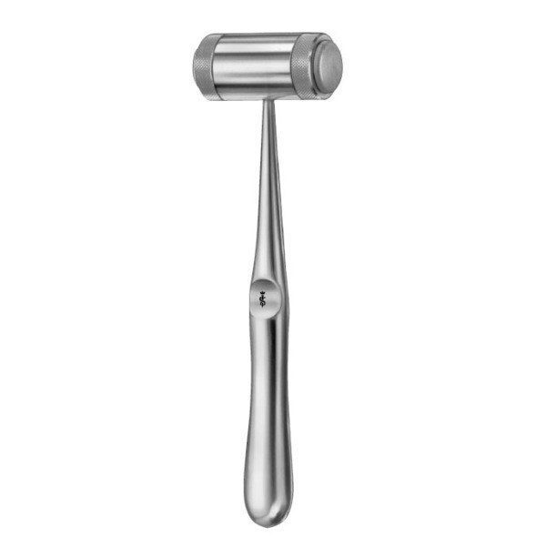 Молоток по MEAD, диаметр 20 мм, длина 190 мм, 180 г, FL035R, B.Braun (Aesculap, Германия) предназначен для применения при хирургических операциях. Инструмент изготовлен из высококачественной нержавеющей стали, рукоятка имеет гладкую поверхность и упор для большого пальца. На рабочей части с двух сторон для приглушения ударного звука в процессе работы есть специальные накладки, которые могут быть заменены в случае необходимости.