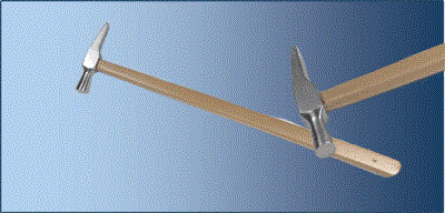 Молоток стальной зуботехнический. Ударная часть имеет два вида бойков: обратно-конусный с плоской ударной частью и сужающийся заостренный. Ударная часть изготовлена из стали и насажена на деревянную ручку. Размеры: длина с ручкой 300 мм, длина ударной части 70 мм Вес молотка с ручкой 100 г, ударной части 80 г.