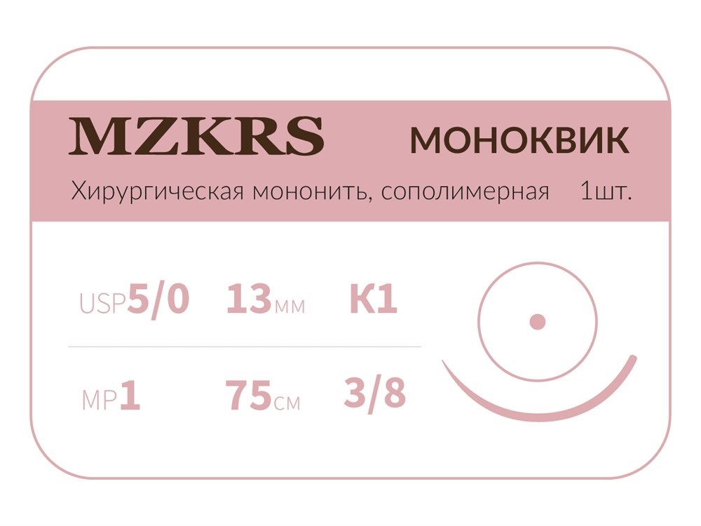 Монк моноквик - хирургическая мононить сополимерная1338К1 Premium-5/0 (1,0)75 МОНК МОНОКВИК хирургическая мононить, сополимерная, колющая игла, MZKRS (Россия)