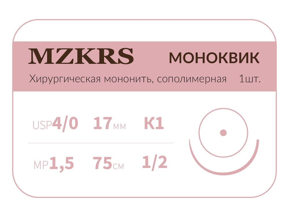 Монк моноквик - хирургическая мононить сополимерная1712К1 Premium-4/0 (1,5)75 МОНК МОНОКВИК хирургическая мононить, сополимерная, колющая игла, MZKRS (Россия)