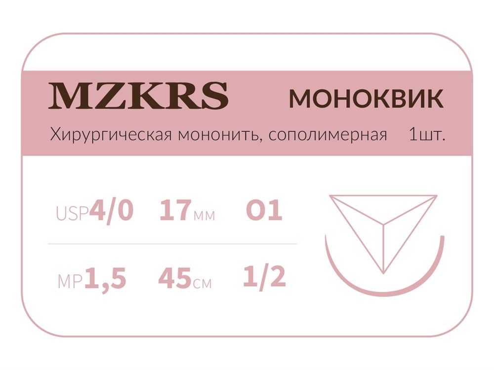 Монк моноквик - хирургическая мононить сополимерная1712О1 Premium-4/0 (1,5)45 МОНК МОНОКВИК хирургическая мононить, сополимерная, обратно-режущая игла, MZKRS (Россия)