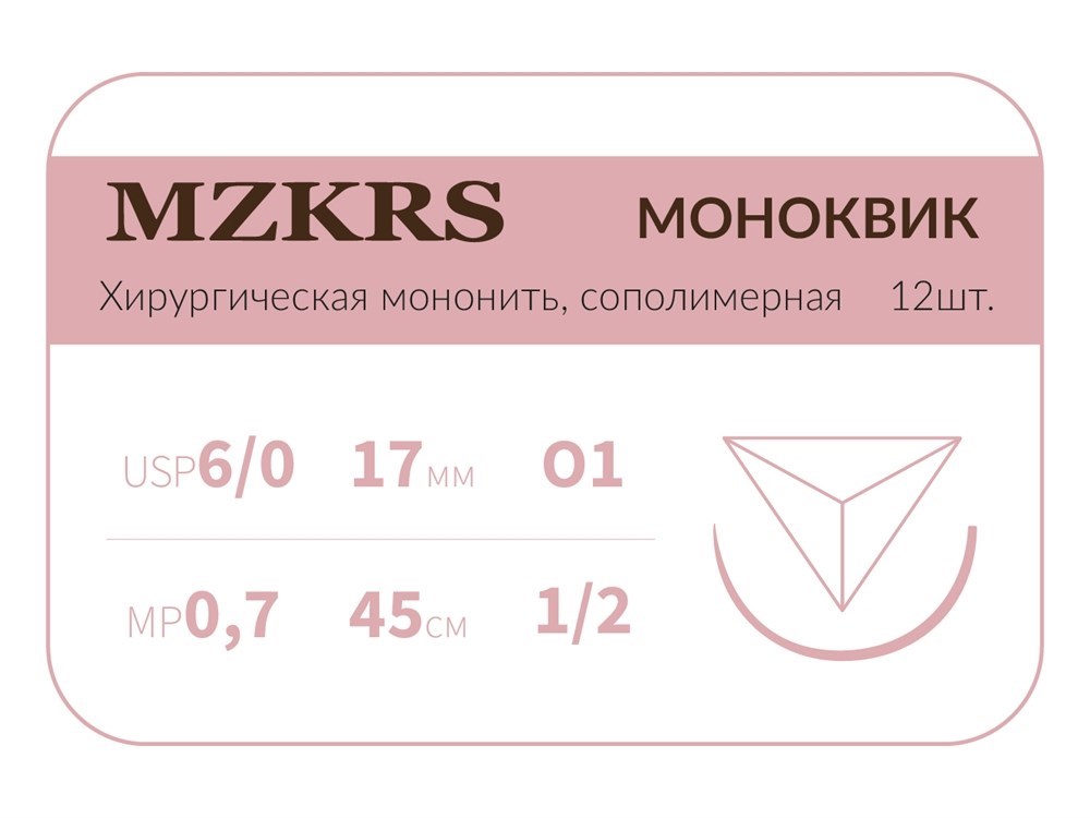 Монк моноквик - хирургическая мононить сополимерная1712О1 Premium-6/0 (0,7)45 МОНК МОНОКВИК хирургическая мононить, сополимерная, обратно-режущая игла, MZKRS (Россия)
