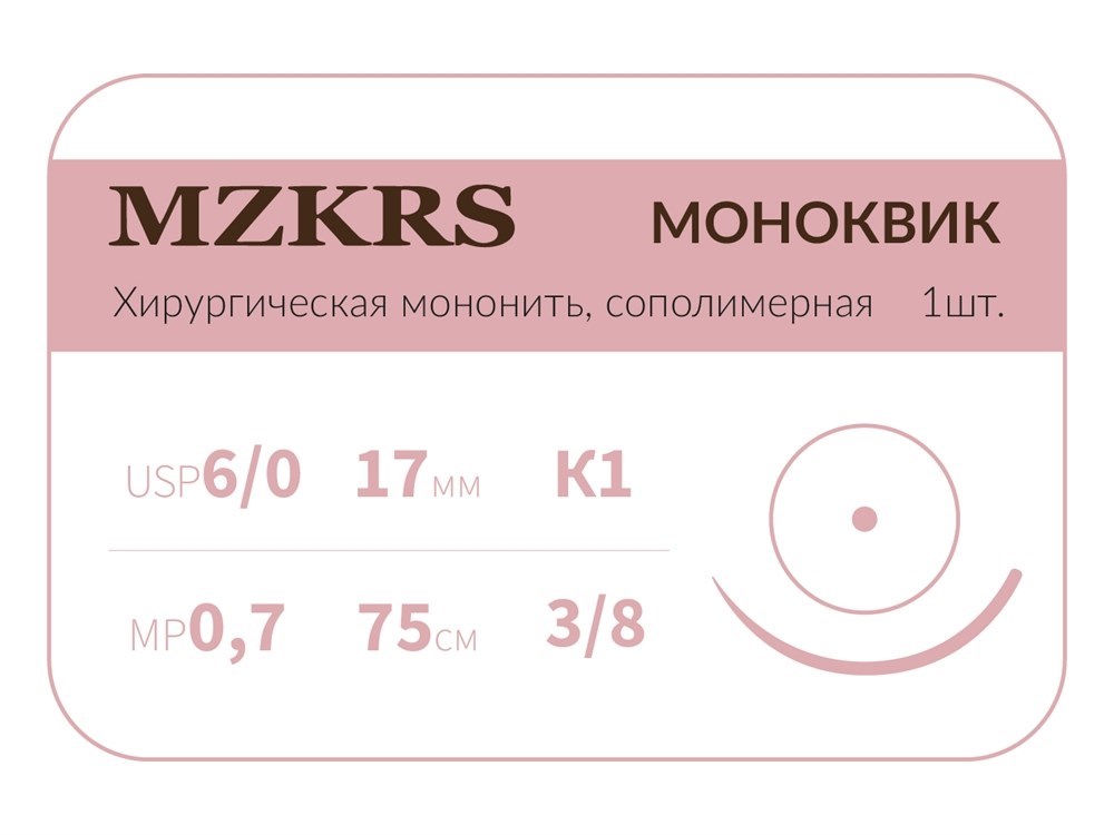 Монк моноквик - хирургическая мононить сополимерная1738К1 Premium-6/0 (0,7)75 МОНК МОНОКВИК хирургическая мононить, сополимерная, MZKRS (Россия)