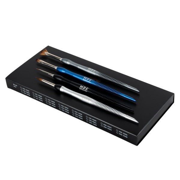 Линия кистей MPF Revolution Brush — это серия кистей Premium без пружины. Кисти из набора имеют дизайн, основанный на японской философии кончиков кистей — более короткие и очень острые.