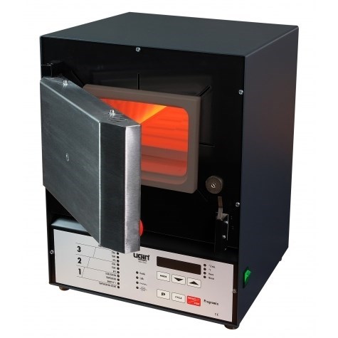 Муфельная печь для предварительного нагрева и прокаливания запакованных кювет. Температура при непрерывной работе - 1050°С, пиковая - 1150°С, высокий КПД, 30 программ, таймер на 100 часов.
