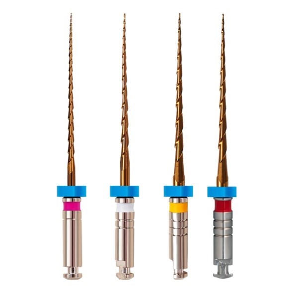 Инструмент MultiTaper Files Gold позволяет одновременно производить: удаление пульпы, прохождение участка, формирование канала. Тем самым уменьшает время процедуры и повышает эффективность. Файл прошел дополнительную термическую обработку, которая делает инструмент более гибким, позволяет отработать большее количество циклов и снижает нагрузку на металл.