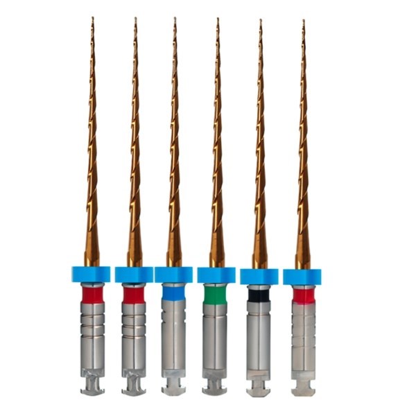 Инструмент MultiTaper Files Gold позволяет одновременно производить: удаление пульпы, прохождение участка, формирование канала. Тем самым уменьшает время процедуры и повышает эффективность. Файл прошел дополнительную термическую обработку, которая делает инструмент более гибким, позволяет отработать большее количество циклов и снижает нагрузку на металл.