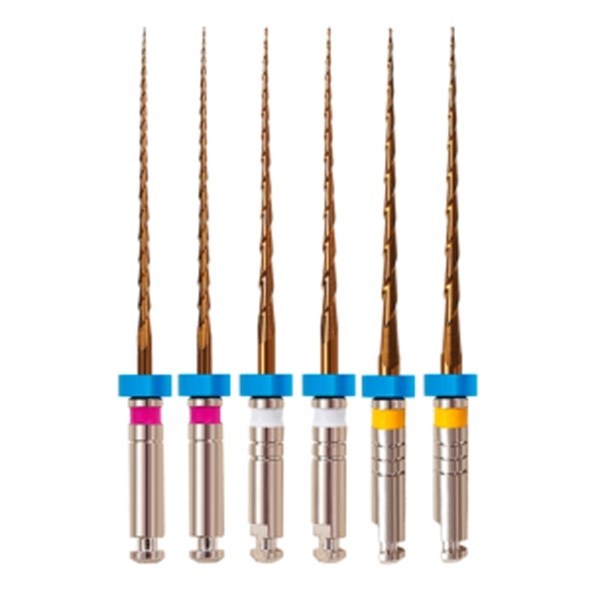 Инструмент MultiTaper Files Gold позволяет одновременно производить: удаление пульпы, прохождение участка, формирование канала. Тем самым уменьшает время процедуры и повышает эффективность. Файл прошел дополнительную термическую обработку, которая делает инструмент более гибким, позволяет отработать большее количество циклов и снижает нагрузку на металл.