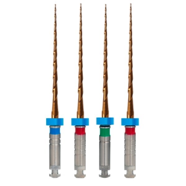 Инструмент MultiTaper Files Gold позволяет одновременно производить: удаление пульпы, прохождение участка, формирование канала. Тем самым уменьшает время процедуры и повышает эффективность. Файл прошел дополнительную термическую обработку, которая делает инструмент более гибким, позволяет отработать большее количество циклов и снижает нагрузку на металл.