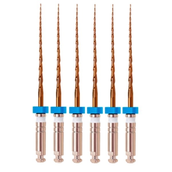 Инструмент MultiTaper Files Gold позволяет одновременно производить: удаление пульпы, прохождение участка, формирование канала. Тем самым уменьшает время процедуры и повышает эффективность. Файл прошел дополнительную термическую обработку, которая делает инструмент более гибким, позволяет отработать большее количество циклов и снижает нагрузку на металл.